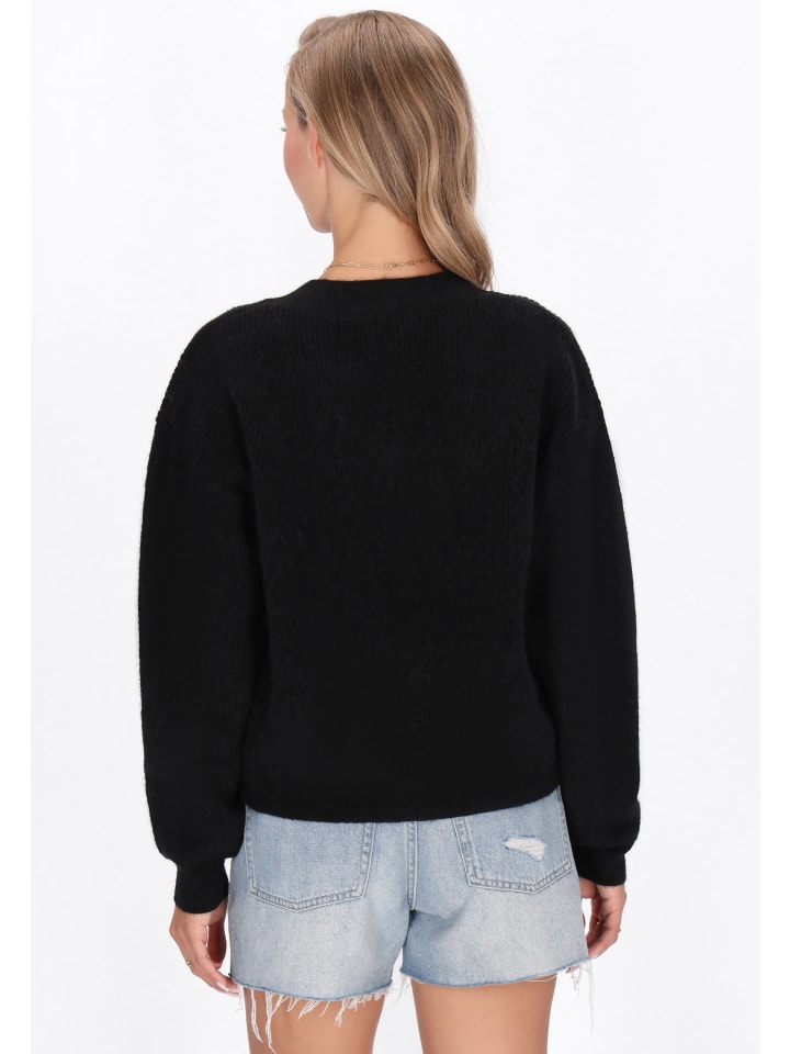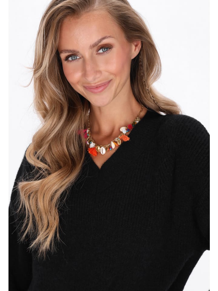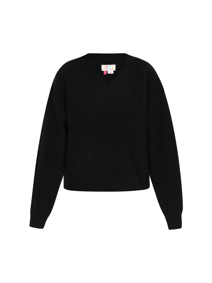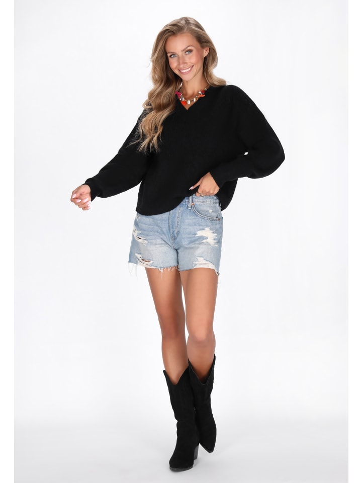 - Свободный свитер с V-образным вырезом и длинными рукавами