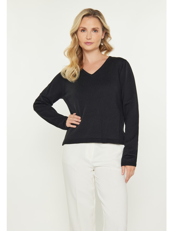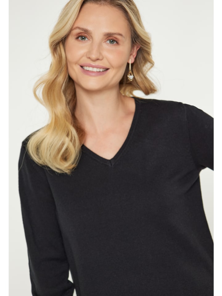 - Свитер прямого кроя с V-образным вырезом и длинными рукавами