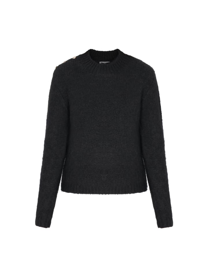 - Свитер классического кроя с круглым вырезом и длинными рукавами