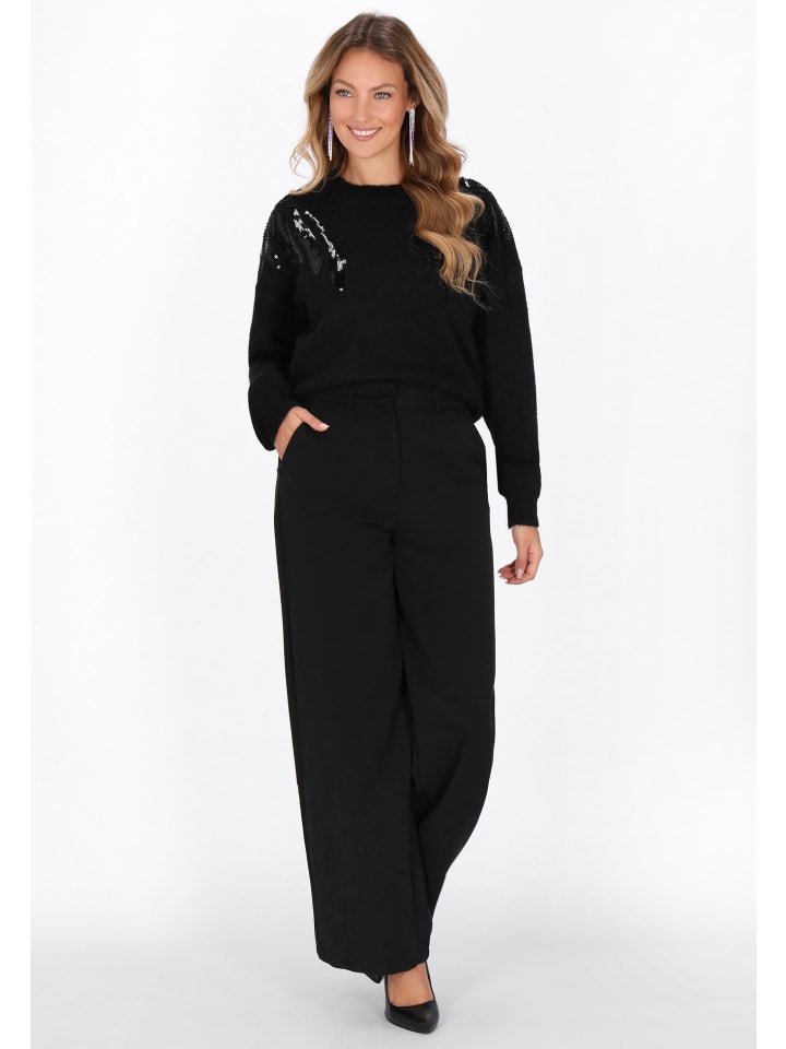 Этот уникальный свитер из коллекции Fashion Look - идеальное сочетание комфорта и женственного гламура. Свободный крой со спущенными плечами и классическим круглым вырезом обеспечивает легкость и комфорт. Изготовленный из мягкого трикотажа, свитер украшен декоративным узором с мерцающими пайетками, который добавляет элегантности повседневному образу. Длинные рукава и уютная текстура делают этот свитер идеальным для прохладных дней. Идеальный выбор для тех, кто ценит непринужденный стиль с ноткой гламура.
