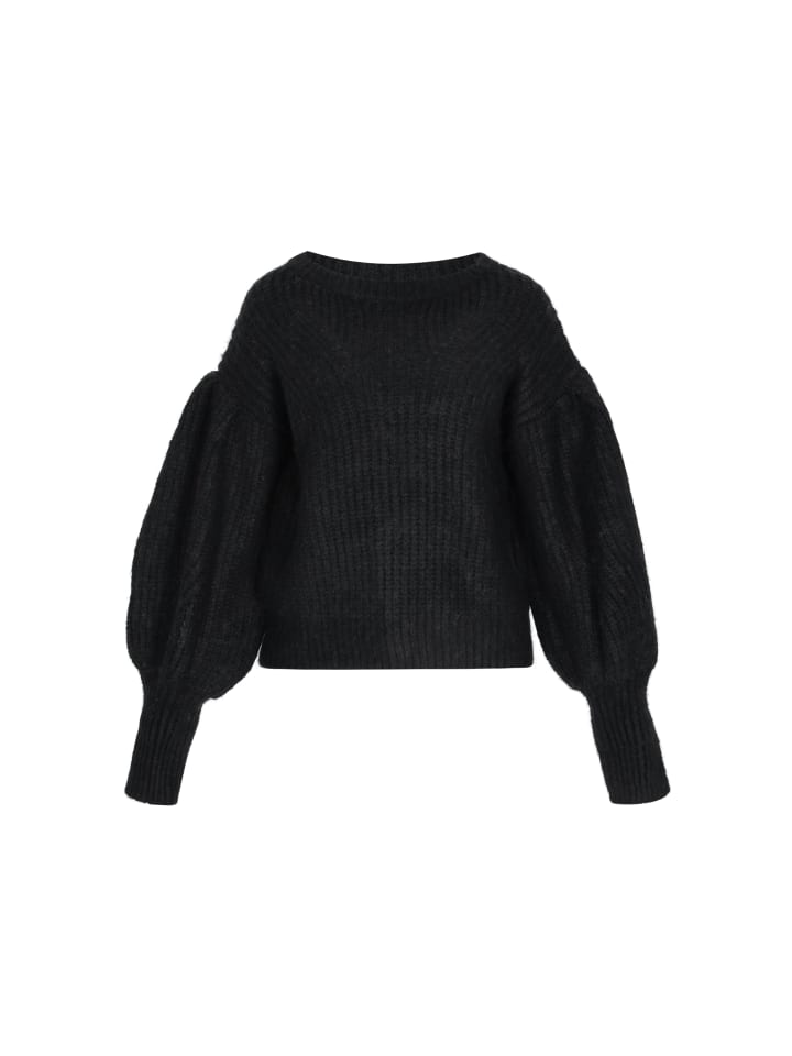 - Свободный свитер с вырезом лодочкой и длинными рукавами