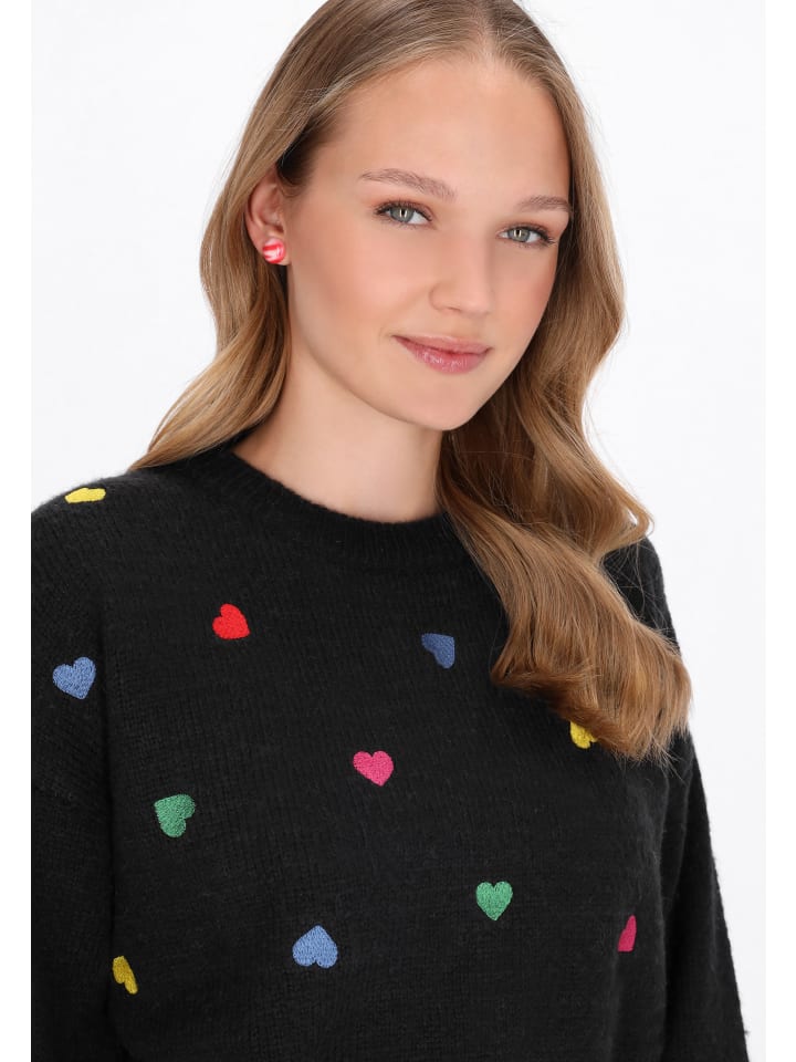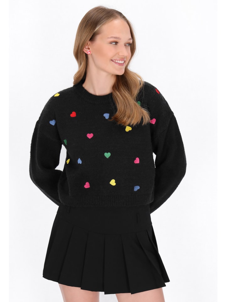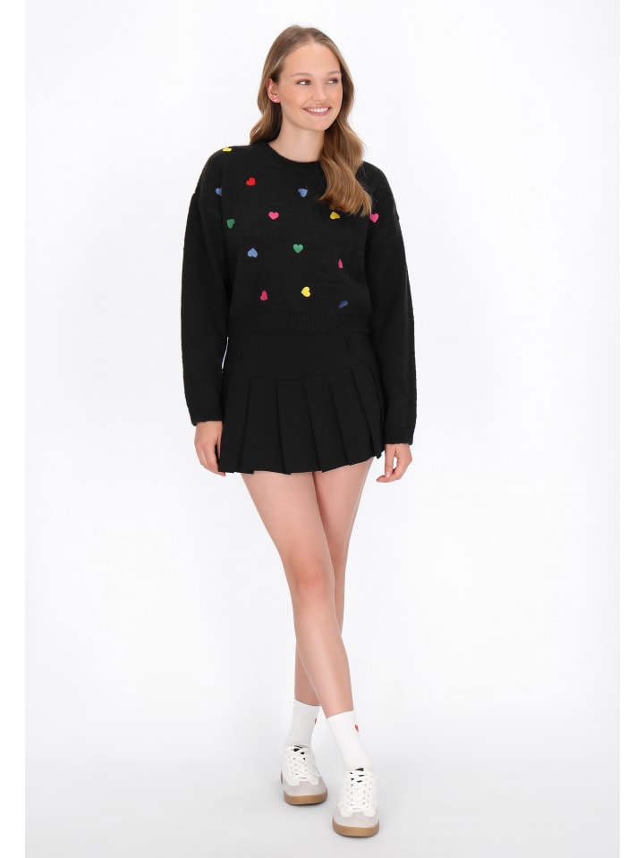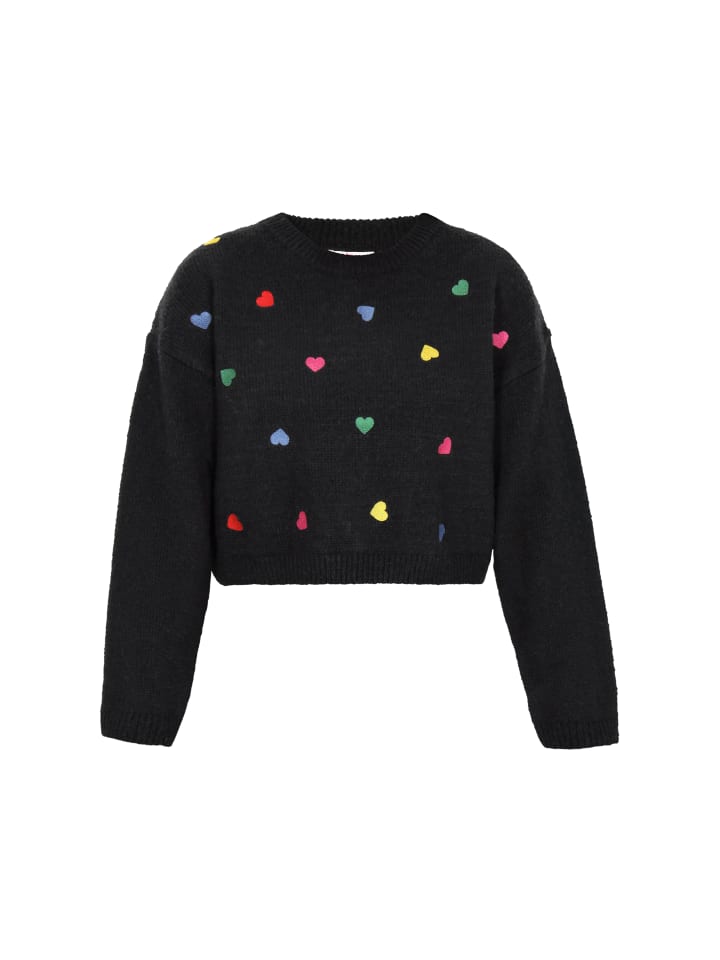 Свободный свитер, сочетающий комфорт и очаровательный молодежный стиль. Изготовленный из мягкой трикотажной ткани и украшенный вышитым узором в виде сердца, он привлекает внимание своим нежным, женственным шармом. Круглый вырез горловины, длинные рукава и спущенная линия плеча создают непринужденный образ, идеально подходящий для повседневных образов. Теплый, приятный на ощупь и исключительно удобный - идеальный выбор для прохладных дней с модной изюминкой.