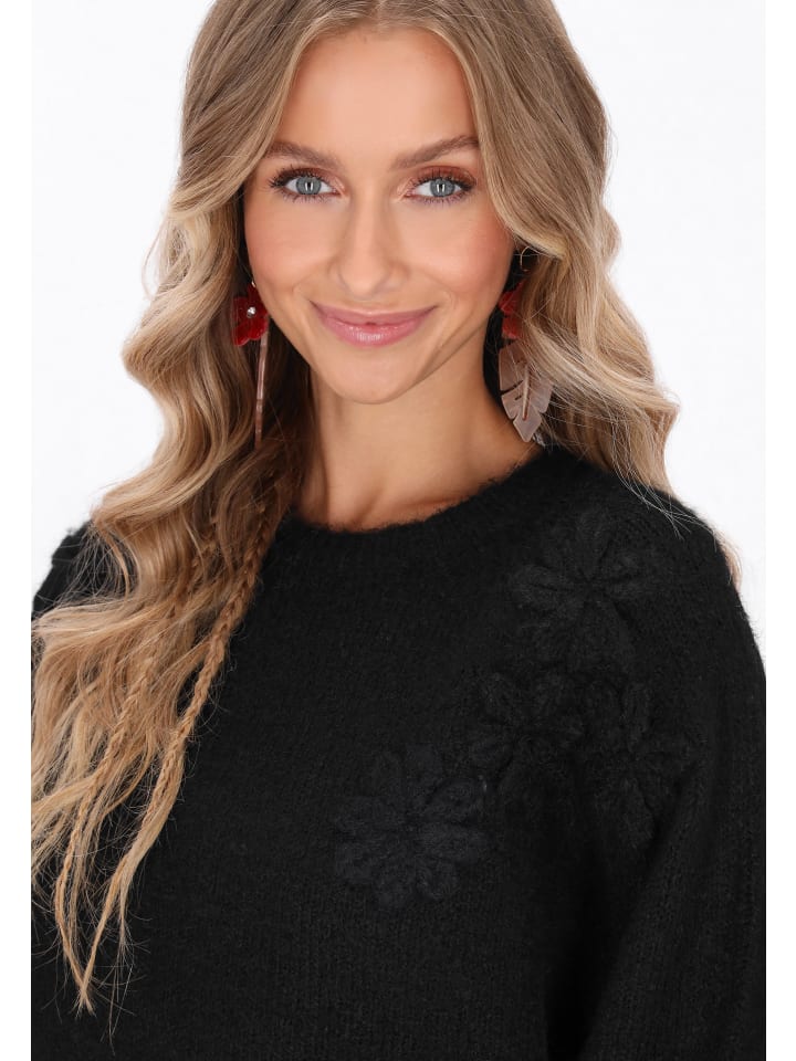 Стильный свободный свитер из мягкой трикотажной ткани. Круглый вырез горловины и длинные рукава-фонарики создают непринужденный образ. Нежные вышитые цветочные узоры добавляют женственности, а мягкая ткань обеспечивает тепло и комфорт. Идеально подходит для повседневной носки, сочетая комфорт и модный вид, что делает его идеальным дополнением к коллекции Fashion Look.