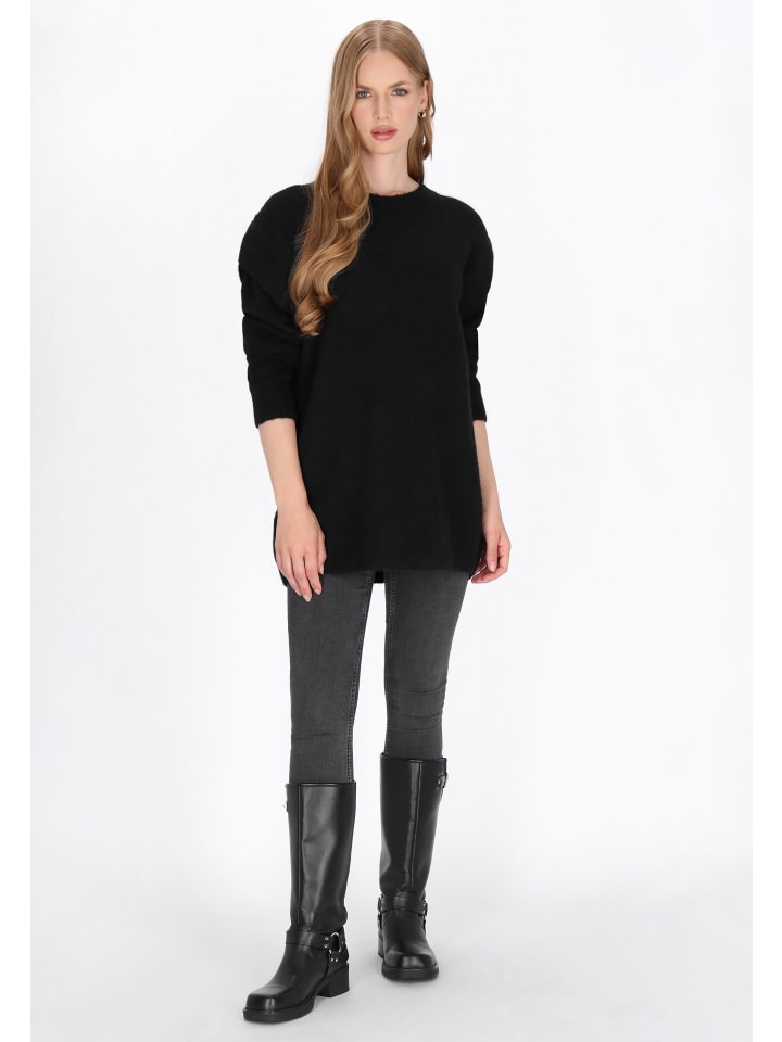 - Свободный свитер с круглым вырезом и длинными рукавами