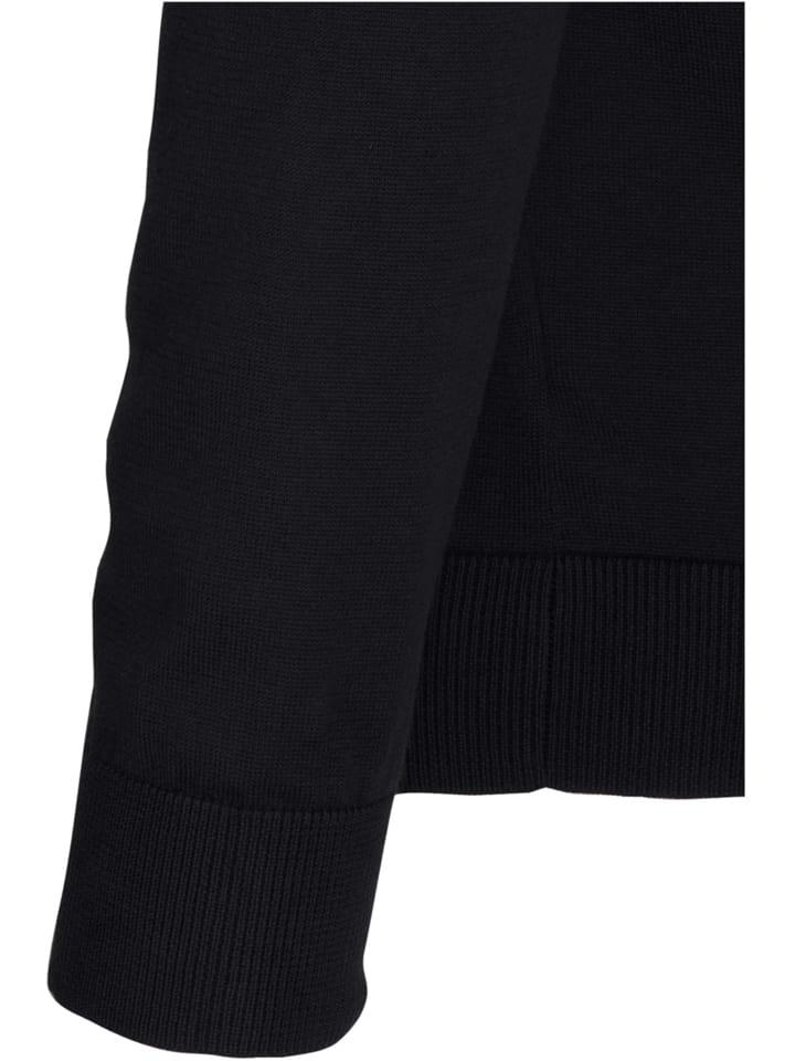 - Ребристая вязка: Вырез горловины, манжеты, подол