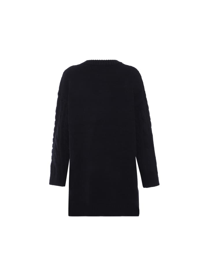- Отделанный ребристыми деталями по подолу, манжетам и вырезу для сохранения формы и выгодной посадки, этот дизайн гармонично сочетает в себе традиционный трикотаж с современными украшениями, создавая непринужденно шикарный образ.