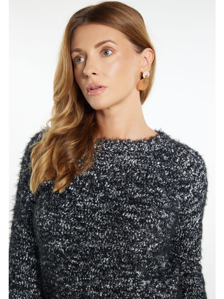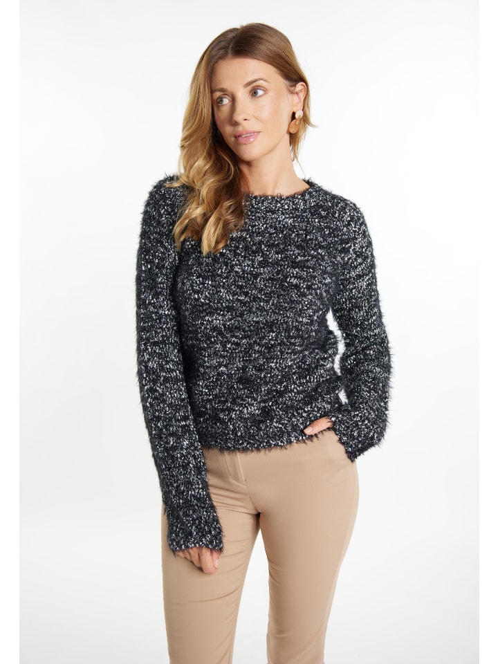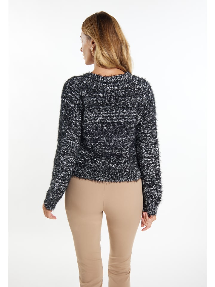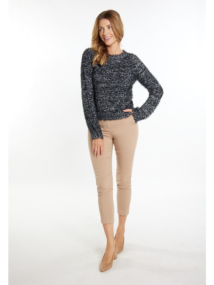 Этот свитер от Usha отличается мерцающим эффектом бахромы и приятен на ощупь. Привлекательный двухцветный дизайн добавляет нотку свежести благодаря легким акцентам. Круглый вырез горловины, рукава и подол отделаны узкими манжетами в рубчик.