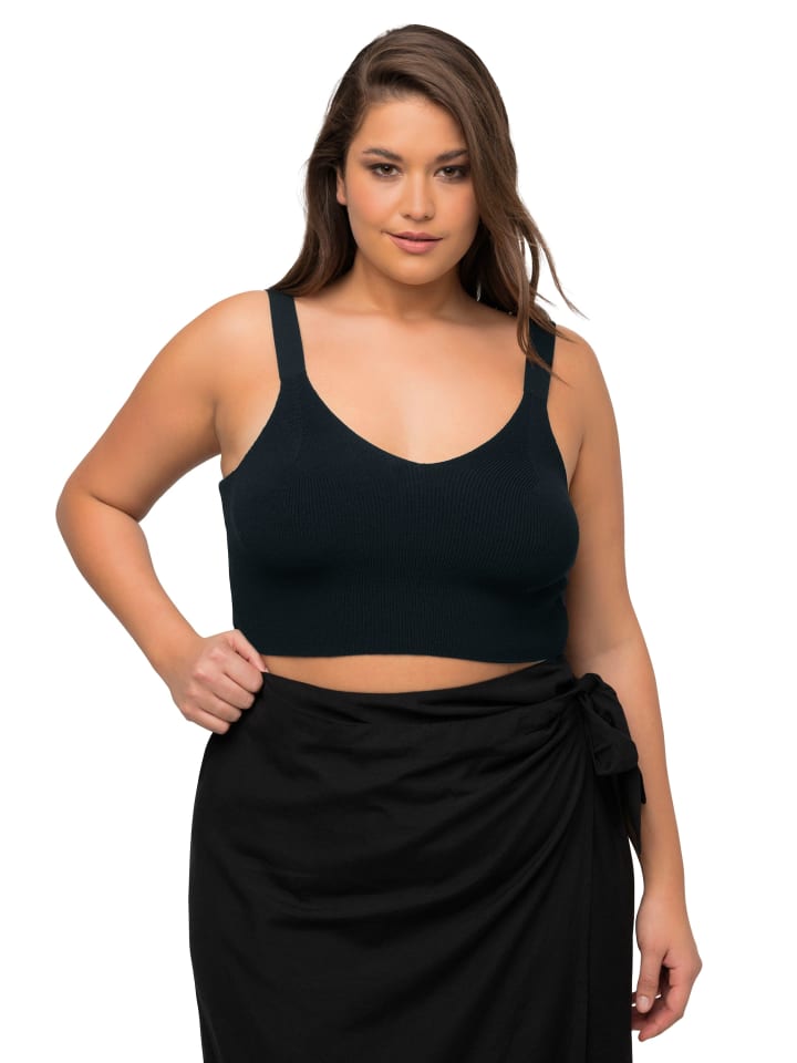 Трикотажное бюстье, облегающее, выполнено из мягкой резинки - эластичное и всегда сохраняет форму. Удобные широкие бретели, V-образный вырез, эластичный подол.