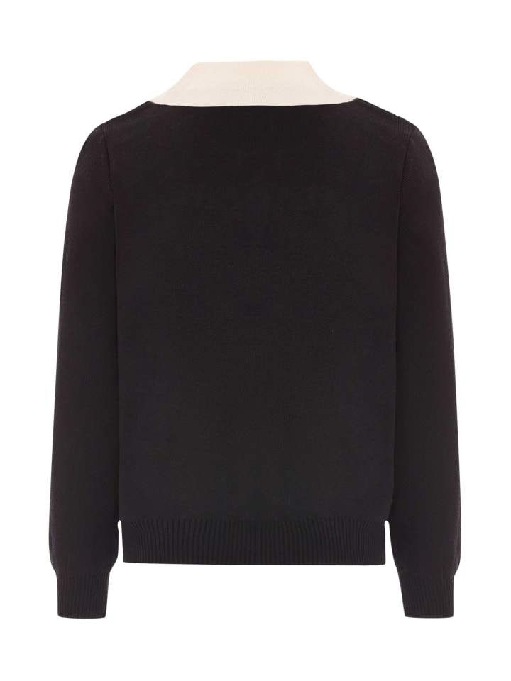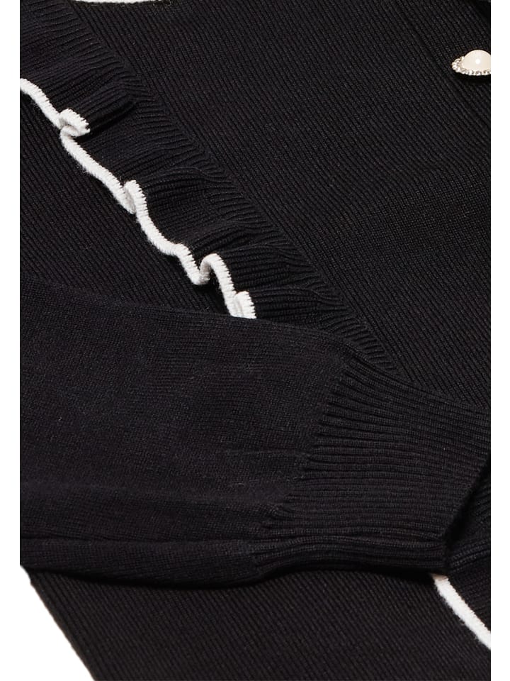Представляем элегантный кардиган с длинными рукавами, очаровательным воротником «Питер Пэн» и оборкой по переду. Декоративный бант на вырезе, украшенный декоративными пуговицами, добавляет элегантности. Ребристые манжеты и подол обеспечивают удобную и стильную посадку, гармонично сочетая классические и женственные элементы дизайна. Разработано совместно Faina и Nascita.