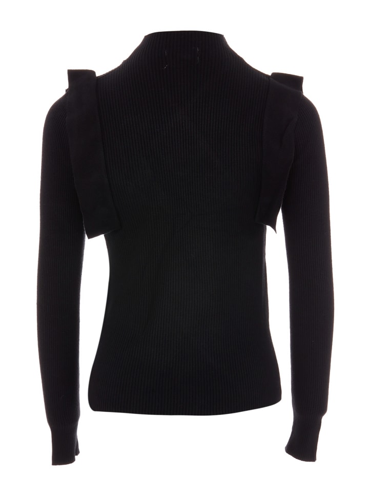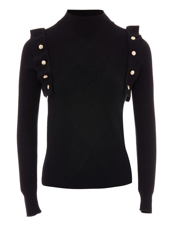 Этот свитер ребристого кроя с высоким вырезом и декоративными лямками, украшенными металлическими пуговицами, имеет облегающий силуэт, подчеркивающий фигуру. Узкие манжеты и подол создают элегантный образ, а отделка в стиле милитари добавляет нотку изысканной утонченности этому стильному изделию. Разработанный совместно с NAEMI, этот свитер сочетает в себе классический стиль и современный дизайн.