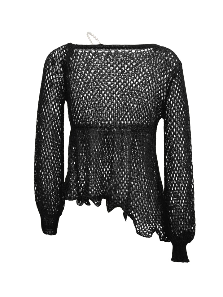 Этот трикотажный женский предмет одежды станет изысканным дополнением к вашему гардеробу. Он отличается широким круглым вырезом и приталенной талией, плавно переходящей в баску. Полупрозрачная вязка добавляет соблазнительный штрих и идеально подходит для многослойного ношения. Разработано совместно Faina и Nolie.