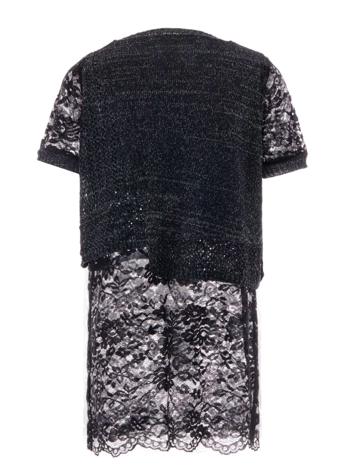 Этот длинный рукав с уникальным многослойным дизайном излучает элегантность. Верхняя часть выполнена из текстурированного трикотажа с ребристым круглым вырезом и манжетами для дополнительной изысканности. Декоративная деталь украшает переднюю часть, добавляя очарования. Плавно переходя, нижняя часть украшена сложным цветочным кружевом с фестончатыми краями, которые доходят до рукавов, создавая гармоничный общий образ. Разработано совместно Faina и Paino.