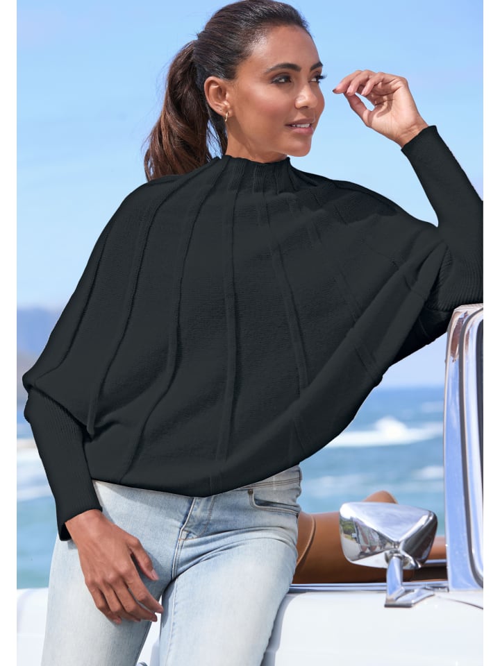 Свитер с рукавами-фонариками от Lascana. С узором. Высокий воротник. Мягкий трикотаж.