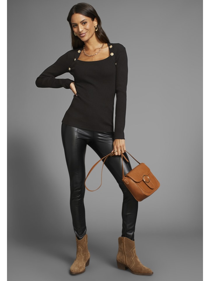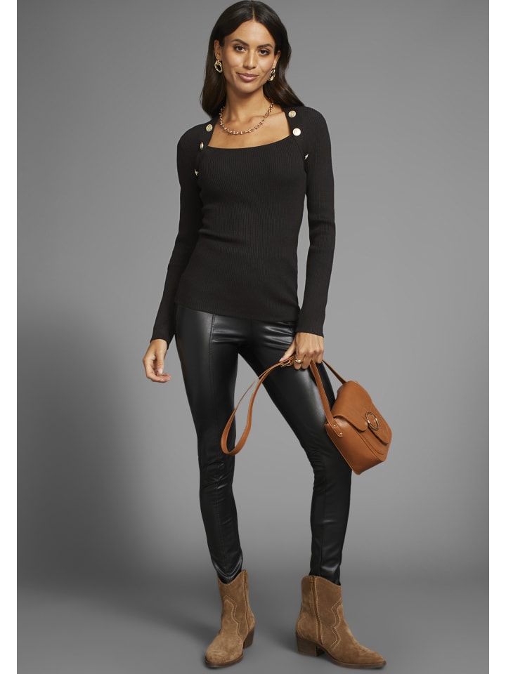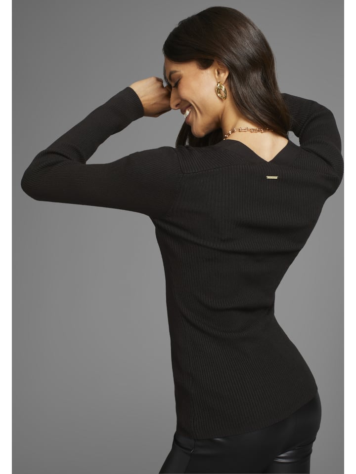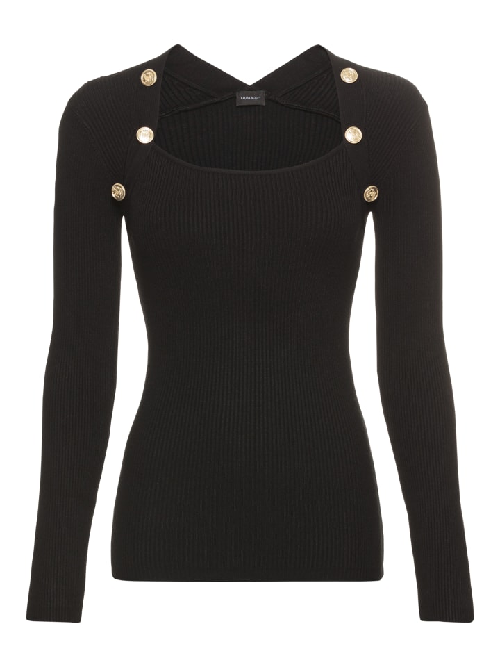 Универсальный женский трикотажный свитер от Laura Scott. Приталенный крой до бедер и длинные рукава. Ребристая трикотажная ткань очень эластична, что делает его исключительно удобным.