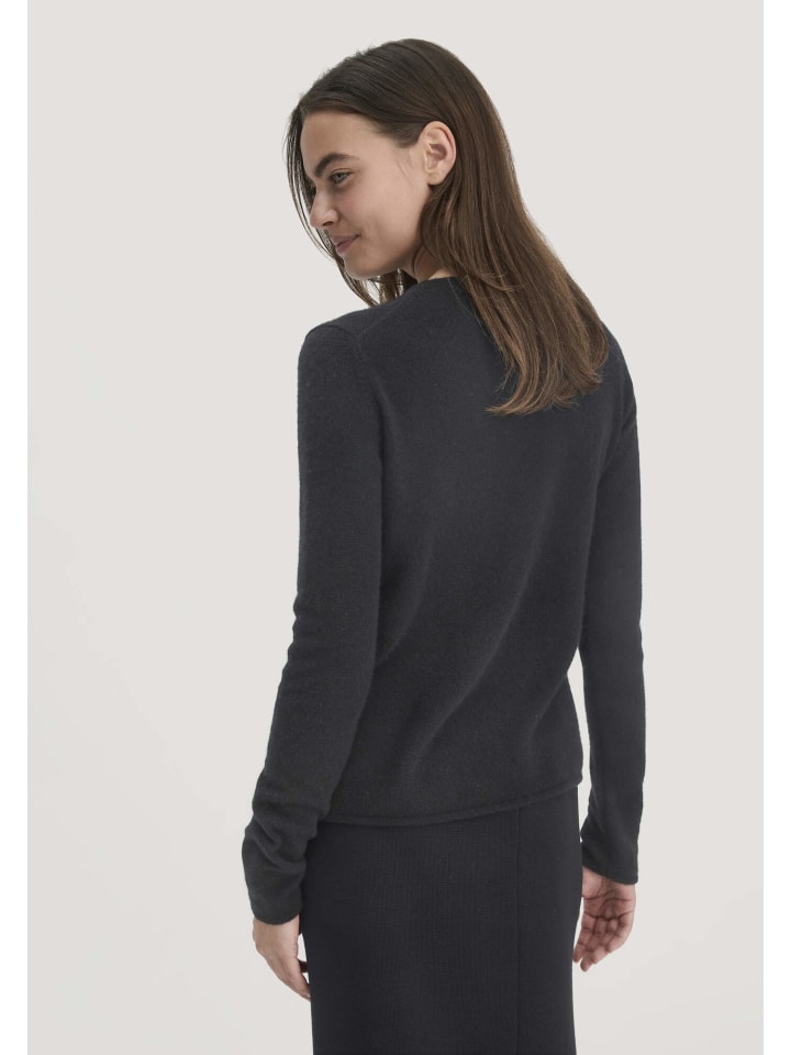 Минимализм и максимальный комфорт. Этот свитер словно обнимает вас. Изготовлен из чистого кашемира, на 40% состоящего из переработанных волокон, полученных из отходов нашего прядения, - он согреет вас в серые дни, ранним утром и в суете повседневной жизни. Прозрачный, мягкий и экологичный.