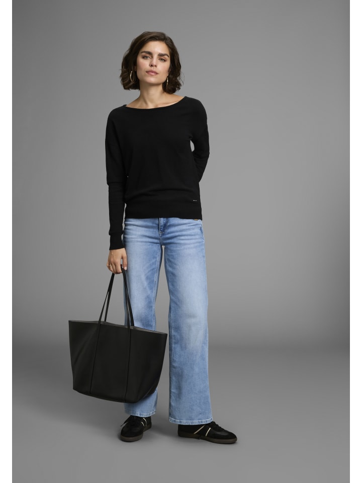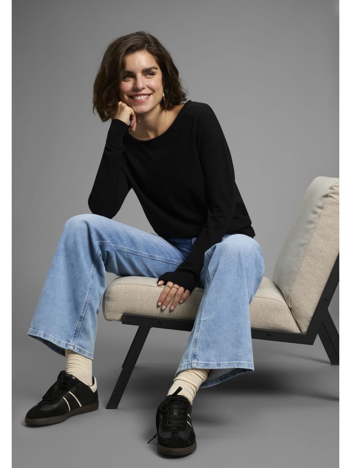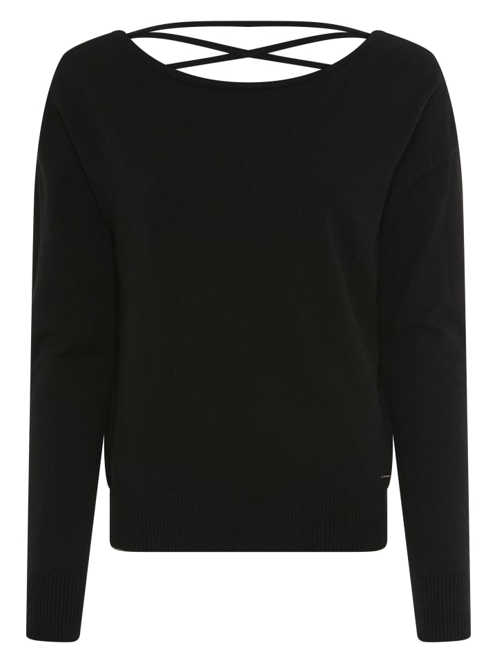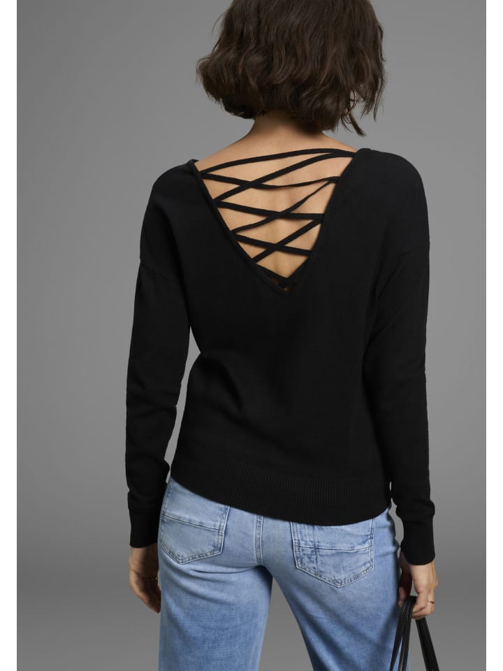 Универсальный женский трикотажный свитер от Laura Scott с эффектной шнуровкой. Длина до бедер, выгодно подчеркивающая фигуру, и длинные рукава. Эластичная тонкая вязка позволяет верху свободно двигаться.