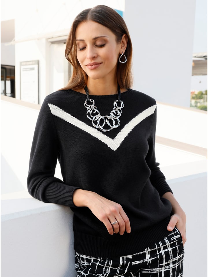 Эффектный, контрастный V-образный узор вязки придает этому удивительно мягкому, идеально сидящему свитеру неповторимый характер. Ребристые манжеты на вырезе «лодочка», длинные рукава и подгиб. Сертифицировано OCS, изготовлено из органического хлопка.