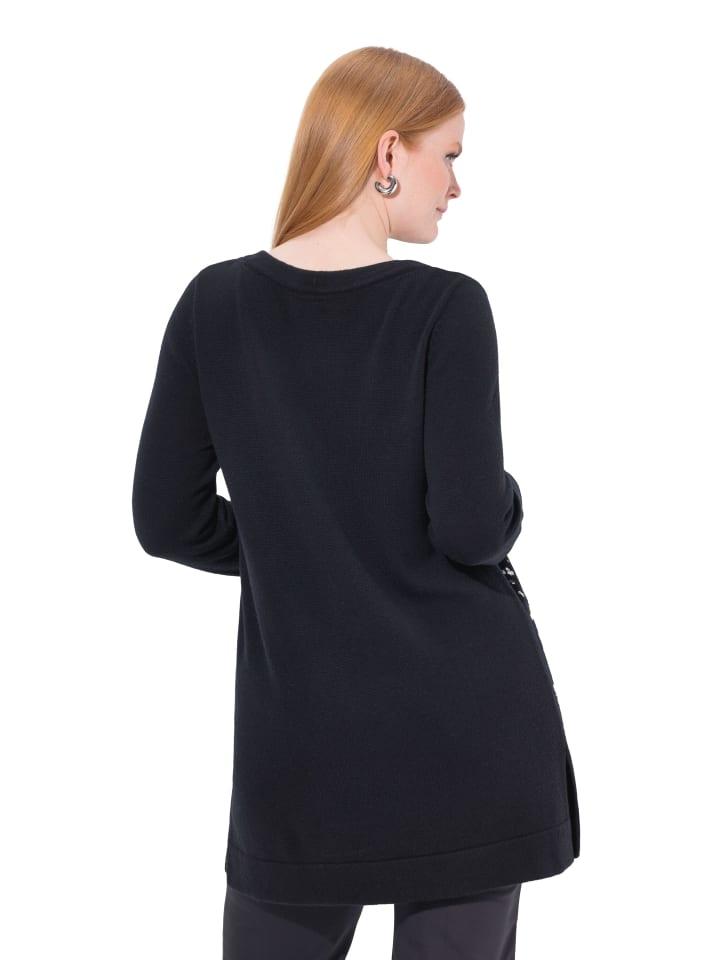 Свитер классического кроя из мягкой тонкой пряжи с отделкой из блестящих пайеток спереди. Круглый вырез, длинные рукава. Высококачественный, полностью фасонный крой с гладкими краями. Боковые разрезы для дополнительного комфорта.