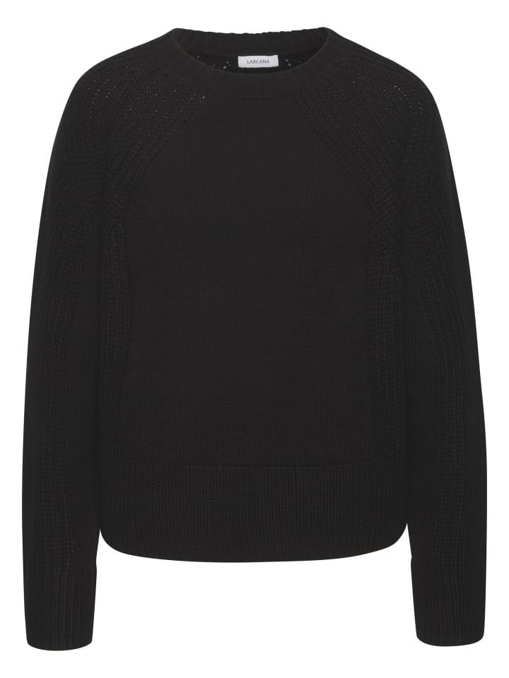 Однотонный трикотажный свитер от Lascana с круглым вырезом. Длинные рукава реглан для удобной посадки. Ребристый подол. Мягкий смешанный материал.