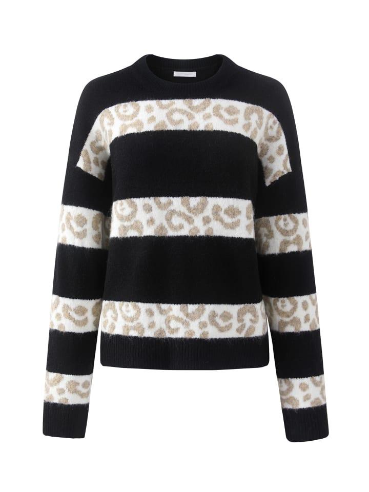 - ДИЗАЙН: Модный свитер с широкими блочными полосками и леопардовым принтом - захватывающий контраст между классическими полосками и элементами анималистичного принта