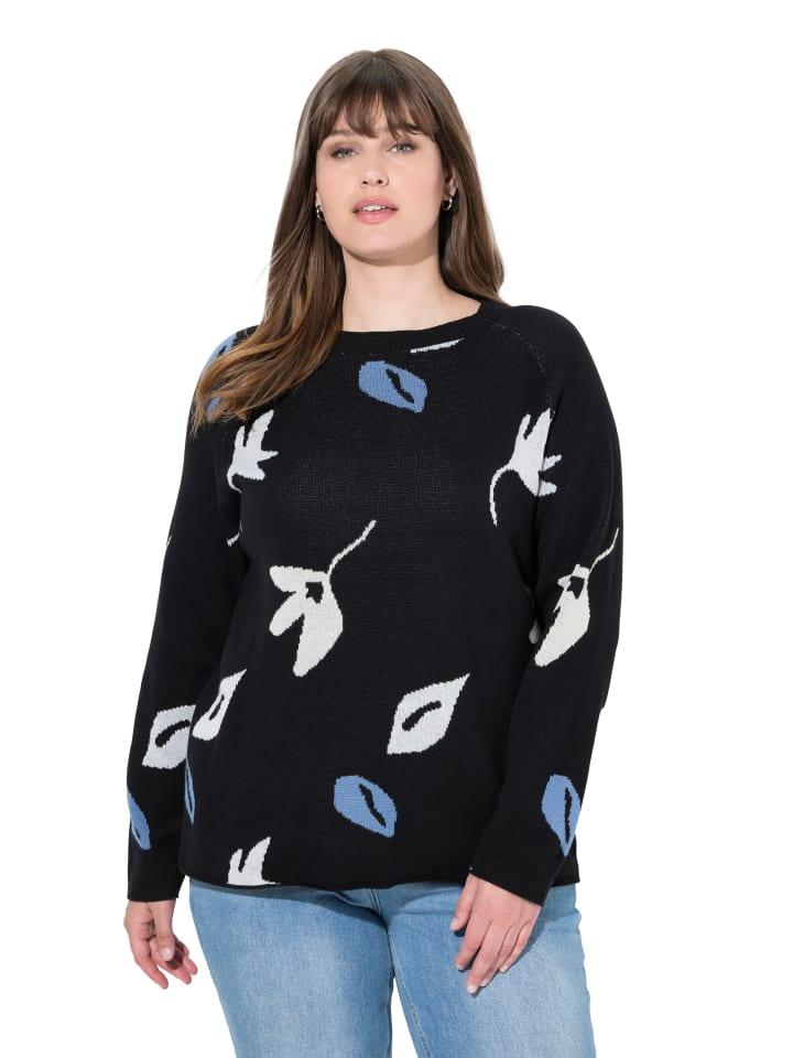 Свитер из органического хлопка. Классический крой, высококачественный жаккардовый трикотаж тонкой вязки с интегрированным узором в виде листьев; внутри нет торчащих ниток. Вырез горловины «лодочка», длинные рукава реглан. Гладкие края. Органический; сертифицирован ECOCERT Greenlife, номер лицензии: 152026.