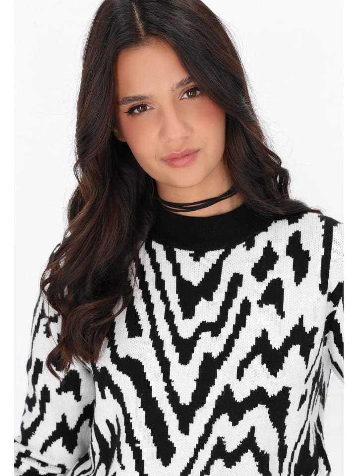 Этот свитер из коллекции Mymo Rocks сочетает в себе комфорт и строгий стиль с рок-н-ролльным стилем. Изготовлен из мягкого трикотажа, имеет стандартный крой, круглый вырез горловины и длинные рукава, что делает его идеальным выбором на каждый день. Его отличительный абстрактный узор придает изделию современный художественный вид, идеально вписывающийся в эстетику рок-стиля. Повседневный, но при этом полный индивидуальности - идеальный вариант для тех, кто не боится выделяться.