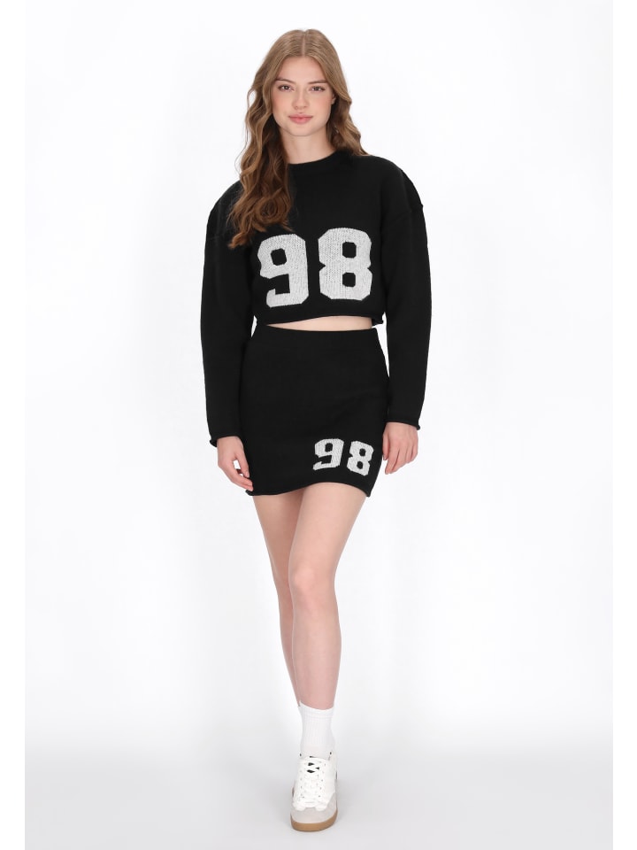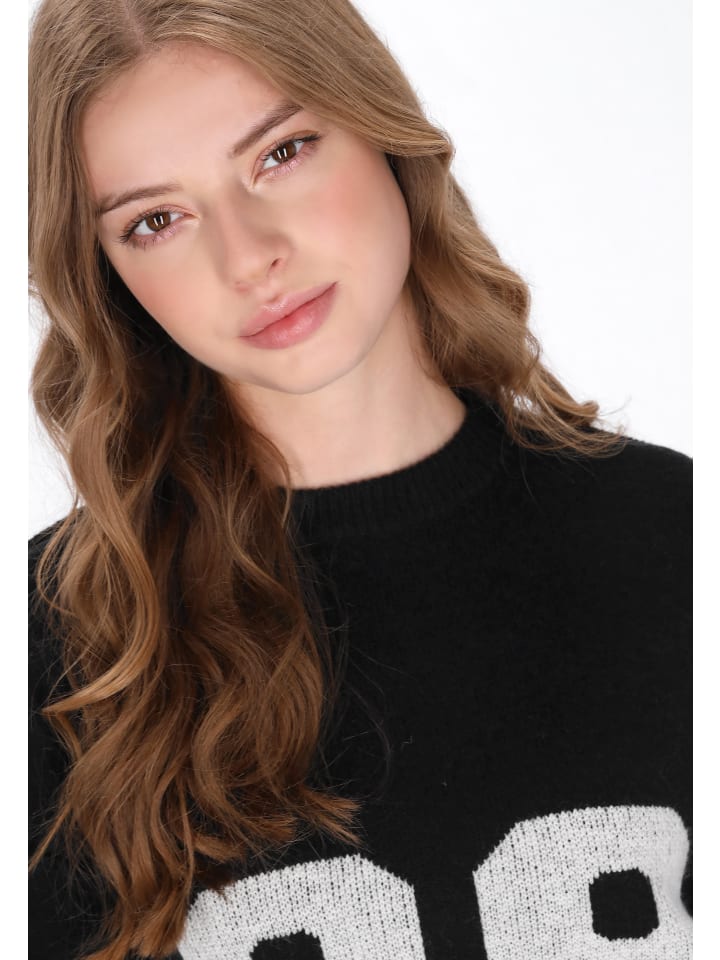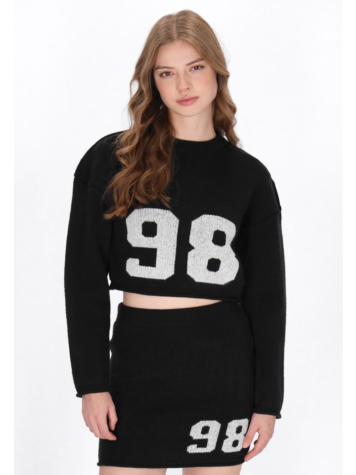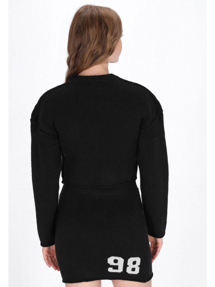 - Укороченный свитер обычного кроя с круглым вырезом и длинными рукавами