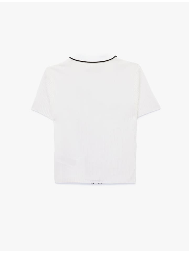 Откройте для себя этот трикотажный топ с воротником-поло и короткими рукавами, сочетающий элегантность и комфорт. Стильные пуговицы и карманы придают топу классический вид. Идеально подходит как для офиса, так и для отдыха, обеспечивая комфортное ощущение и универсальные возможности для повседневной носки.