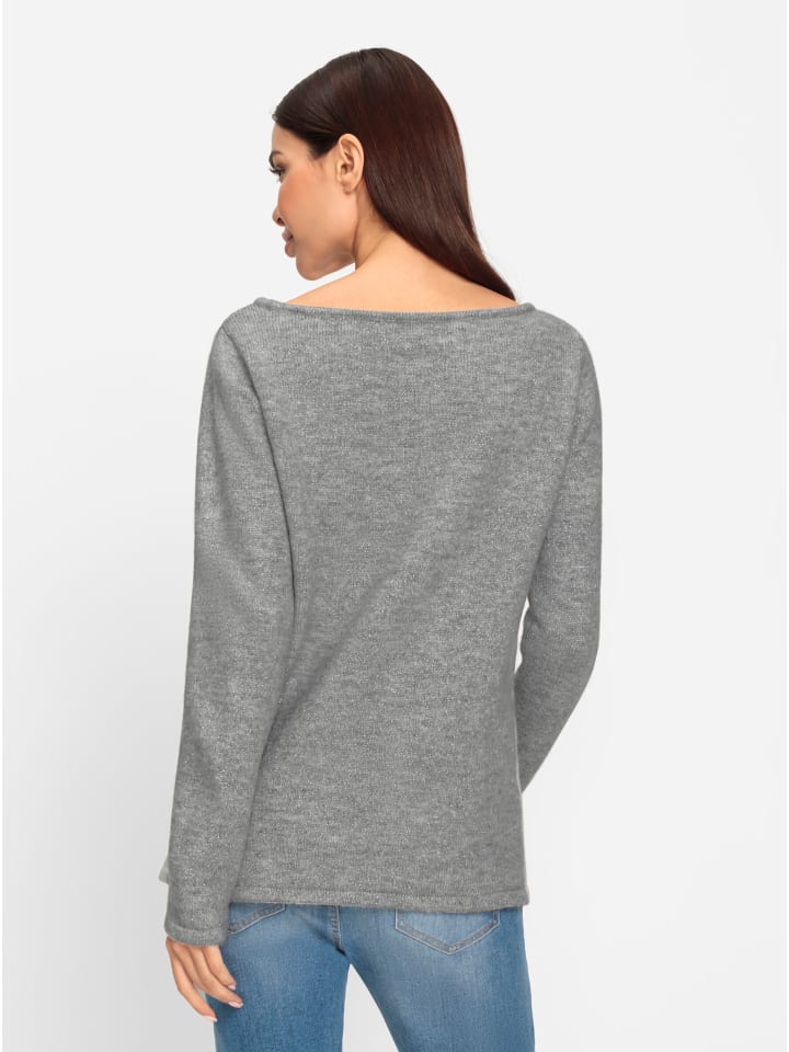 Свитер в стиле пэчворк из пряжи нового дизайна. Женственный вырез «лодочка» и длинные рукава.