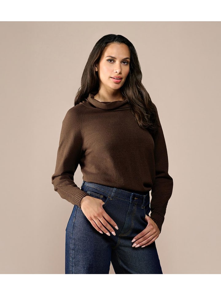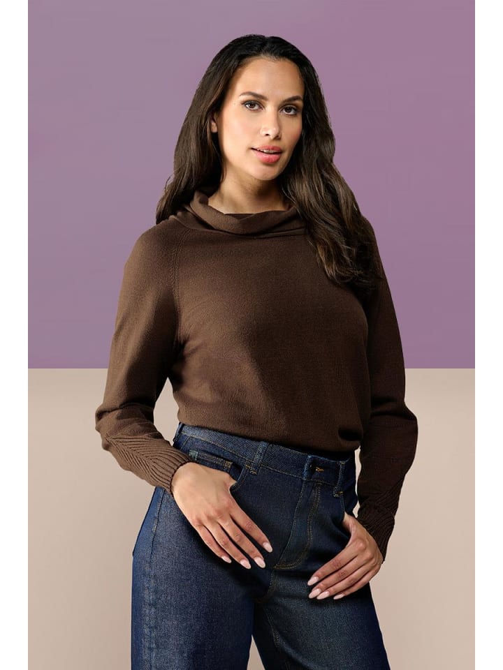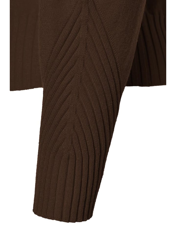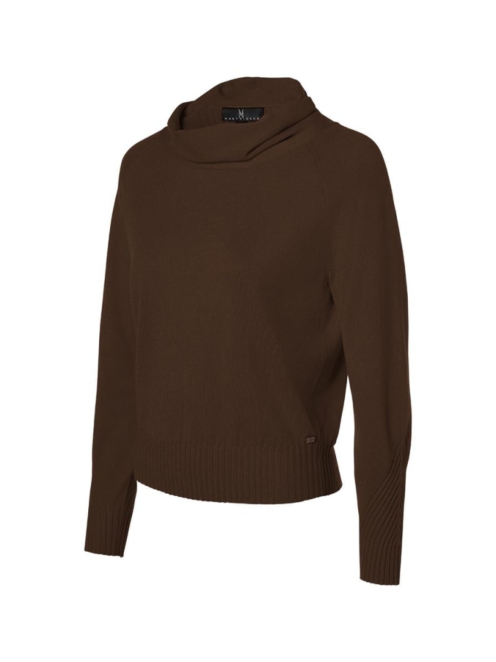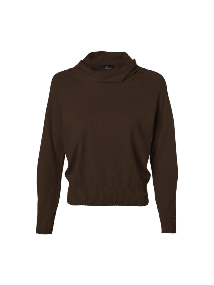 Темно-коричневый свитер Cherbrough с высоким воротом от Mart Visser сочетает в себе современный стиль и комфорт. Теплый коричневый оттенок придает модели модный вид, а прямой, изысканный крой создает классический силуэт. Этот свитер из мягкой, дышащей вискозной смеси обеспечит комфорт в течение всего дня. Длина до бедер и длинные рукава реглан обеспечивают универсальность и элегантный вид. Трикотажные треугольные детали на рукавах и спинке добавляют изящный элемент дизайна, а водопадный вырез создает струящийся и женственный эффект. Ребристые манжеты и низ дополняют образ и обеспечивают сохранение формы.