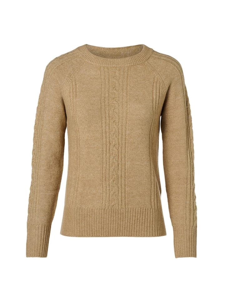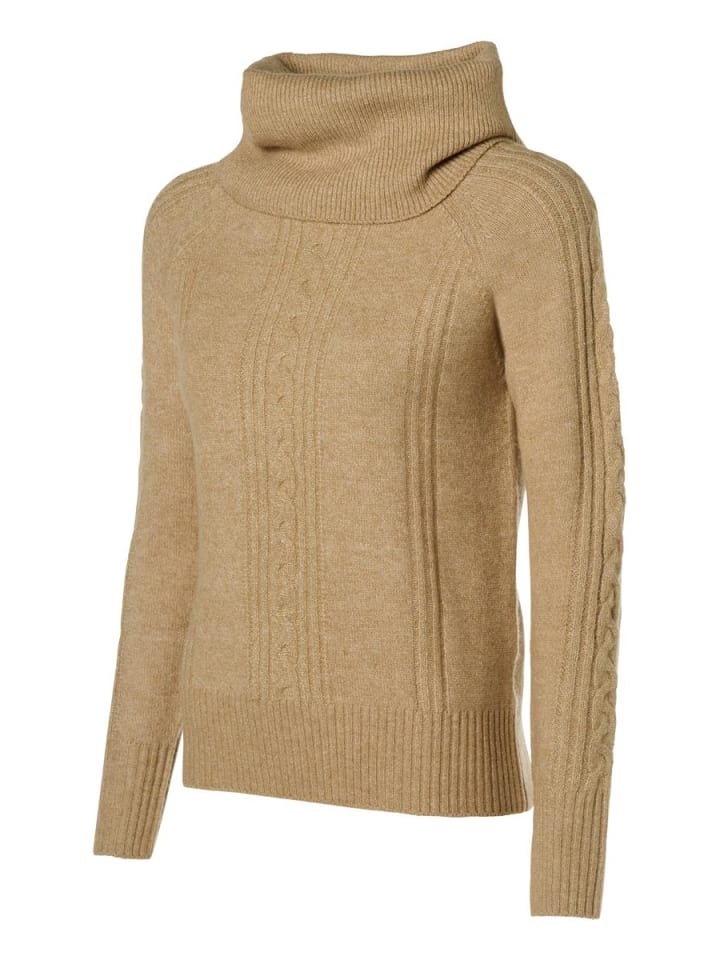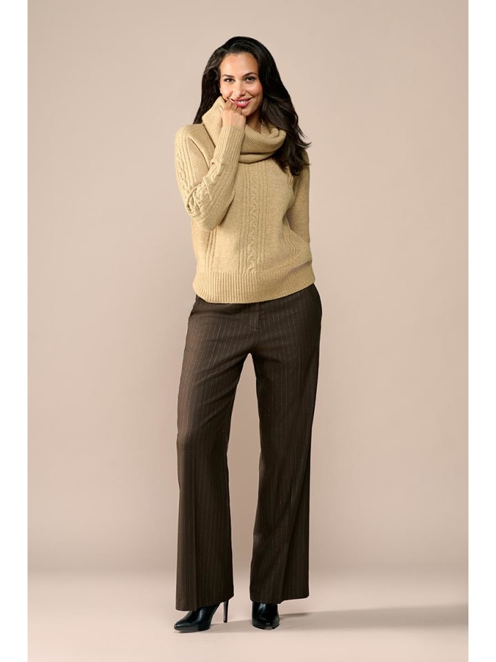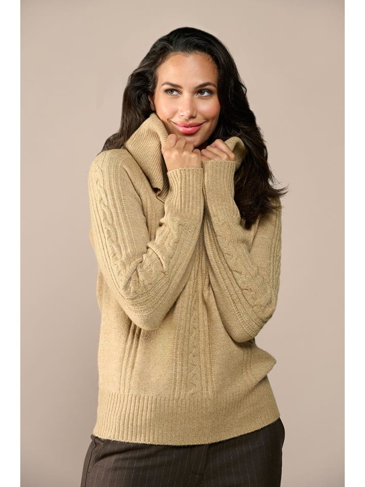 Свитер Liv песочного цвета с люрексом - это вневременная базовая вещь с ноткой роскоши. Дизайн сочетает в себе исключительный комфорт с элегантным внешним видом и предлагает множество вариантов стилизации благодаря длинным манжетам, деталям, связанным крючком, и съемной водолазке. Косичная вязка теплого песочного оттенка украшена мерцающими нитями люрекса, что придает ему утонченный праздничный штрих. Широкие ребристые манжеты на рукавах и подоле обеспечивают современную посадку и дополнительный комфорт. Немного укороченная длина, доходящая до бедер, придает свитеру современный вид. Водолазка с небольшой пуговицей сзади легко снимается, что позволяет создать женственный, непринужденный стиль или дополнительно согреться в прохладную погоду. Высококачественное сочетание материала с мягкой шерстью делает этот блестящий свитер не только красивым, но и удивительно теплым. Сочетайте его с брюками Rosely коричневого цвета для создания шикарного ансамбля или с джинсами прямого кроя для более повседневного образа. Этот свитер Liv песочного цвета с люрексом - настоящая находка осени для тех, кто любит мягкие цвета, роскошь и универсальность.
