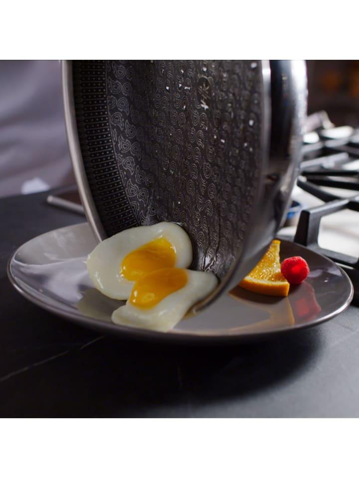 Благодаря инновационному гибридному дизайну нержавеющей стали и армированного алмазами керамического антипригарного покрытия даже сложные блюда готовятся легко и не пригорают.
