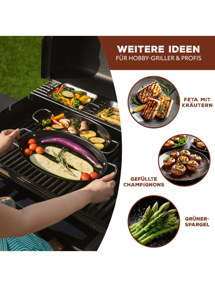 Нежные продукты, такие как рыба, можно аккуратно приготовить, не пригорая при переворачивании. Мелкие кусочки больше не проваливаются сквозь решетку гриля. Защищает от открытого, проникающего пламени.