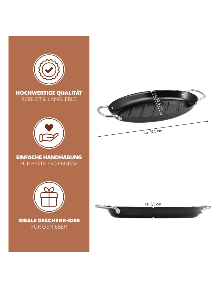Площадь варочной поверхности составляет ок. Сковорода для гриля размером 33 x 20,5 см и высотой 3,5 см предлагает достаточно места для продуктов и возможность их переворачивать.