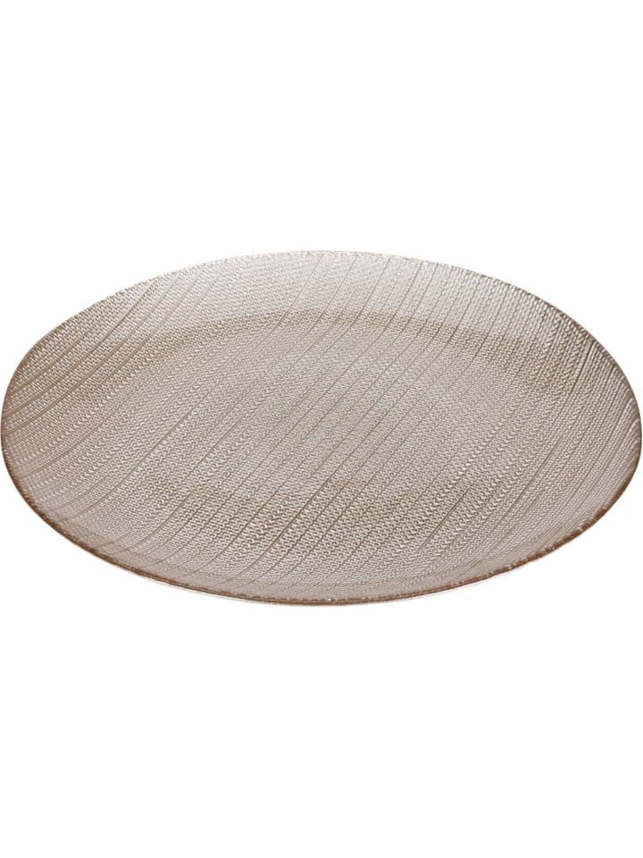 Металлический цвет: Золотистый оттенок в сочетании с текстурой рельефных полос и точек делает тарелку эффектным украшением стола.