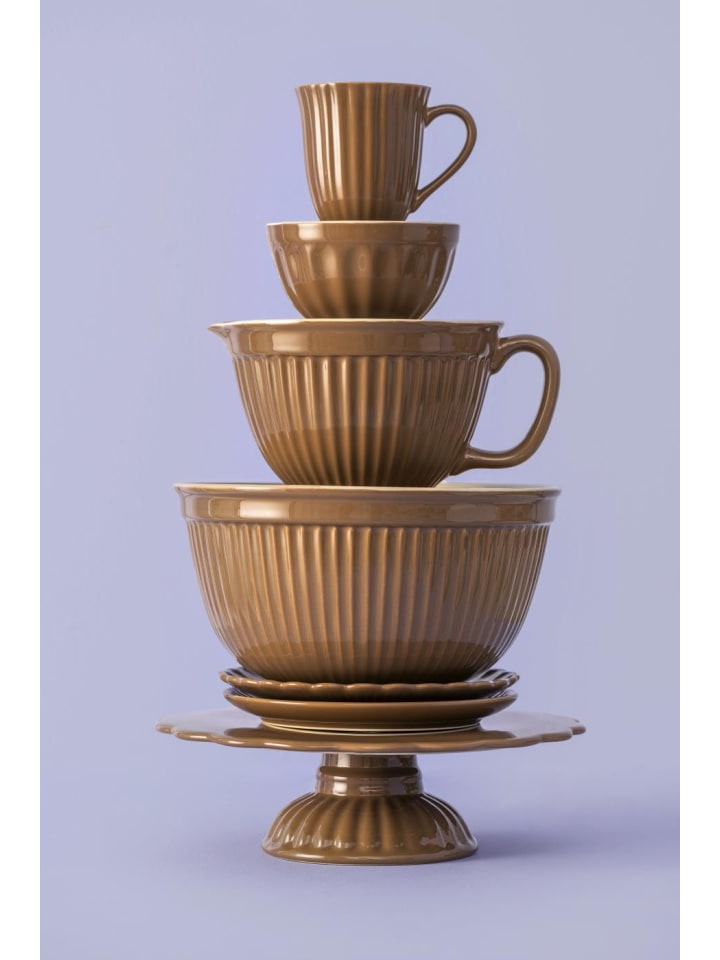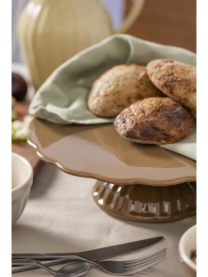 Изготовленная из высококачественной керамики, она не только обеспечивает прочную основу для ваших деликатесов, но и стильно их представляет. Слегка приподнятое основание придает тарелке элегантный вид, а большой диаметр обеспечивает достаточно места для разнообразных угощений. Благодаря коричневому цвету Mynte с ореховым покрытием эта тортовница гармонично впишется в интерьер вашей кухни, не жертвуя своей уникальной привлекательностью. Эта тортовница, будь то часть коллекции посуды Mynte или самостоятельный предмет, станет не только практичным спутником, но и естественным дополнением к вашей кухне. Откройте для себя теплое очарование лесного ореха в нашем эксклюзивном интернет-магазине IB Laursen и добавьте деревенский штрих к своему журнальному столику.