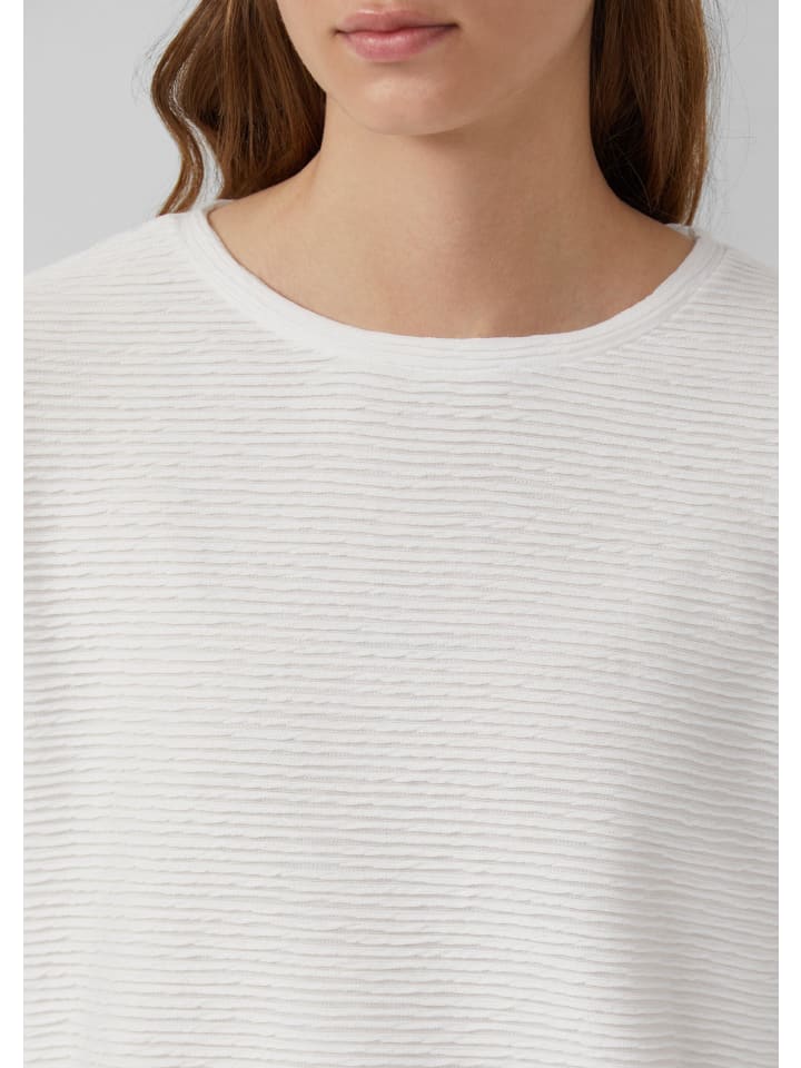 Эта мягкая толстовка свободного кроя с нежным фактурным рисунком и рукавами три четверти. Разрез по низу и спущенная линия плеча делают ее идеальным повседневным аксессуаром.