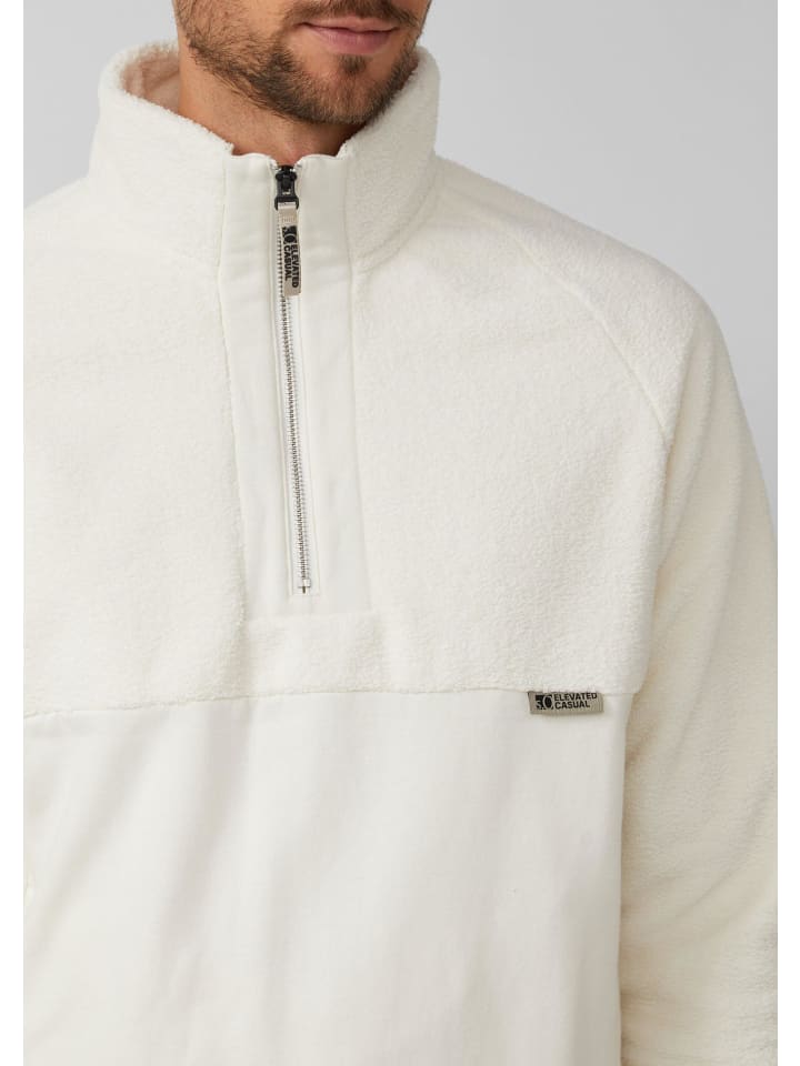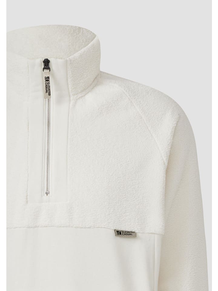 Простота и удобство на весь день! Эта плюшевая кофта-мешок свободного кроя с полумолнией сочетает в себе мягкий флис и спортивный трикотаж - идеальный вариант для непринужденных выходных или спонтанных прогулок. Практичная молния и боковые карманы позволяют легко надевать и снимать. Логотип и нашивка с этикеткой делают этот микс стильным дополнением, сочетающим комфорт и стильный вид.