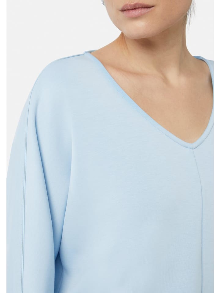 Комфорт и стиль: эта свободная толстовка из мягкой хлопковой смеси станет вашим новым фаворитом на каждый день. V-образный вырез и рукава «летучая мышь» добавят женственности, а боковые разрезы и окантовка добавят модных акцентов. Идеально подходит для расслабленных дней - сочетайте ее с джинсами для непринужденного образа или с брюками для создания элегантного повседневного образа.