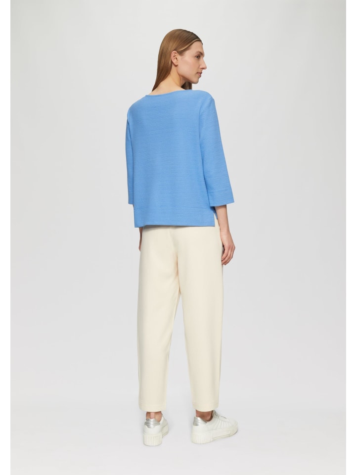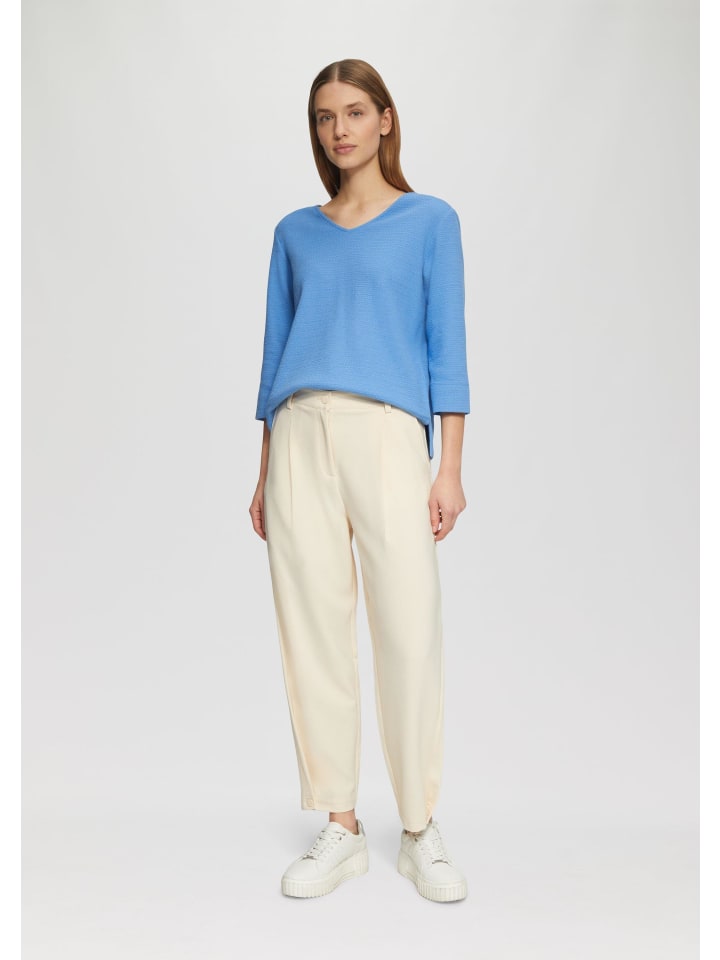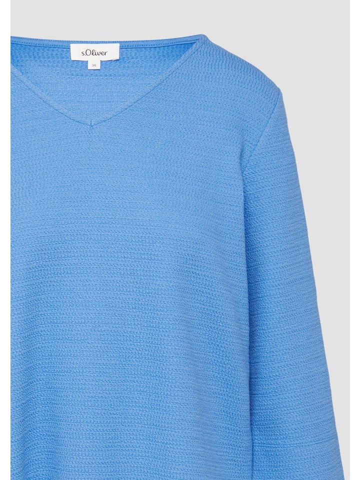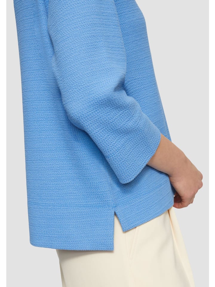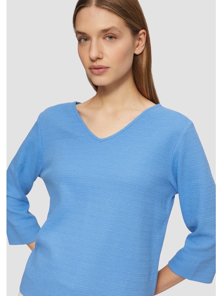 Эта структурированная трикотажная толстовка с V-образным вырезом впечатляет своей мягкостью и комфортом, а также спортивно-элегантными полосками. Рукава 3/4 и боковые разрезы по низу делают ее идеальным дополнением к непринужденным повседневным образам.