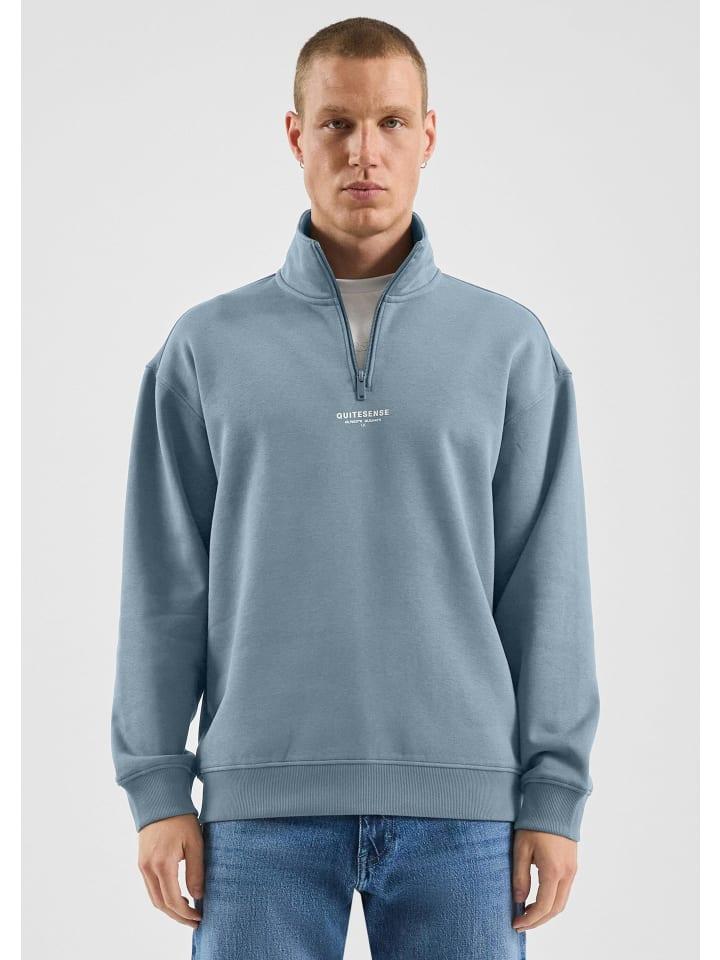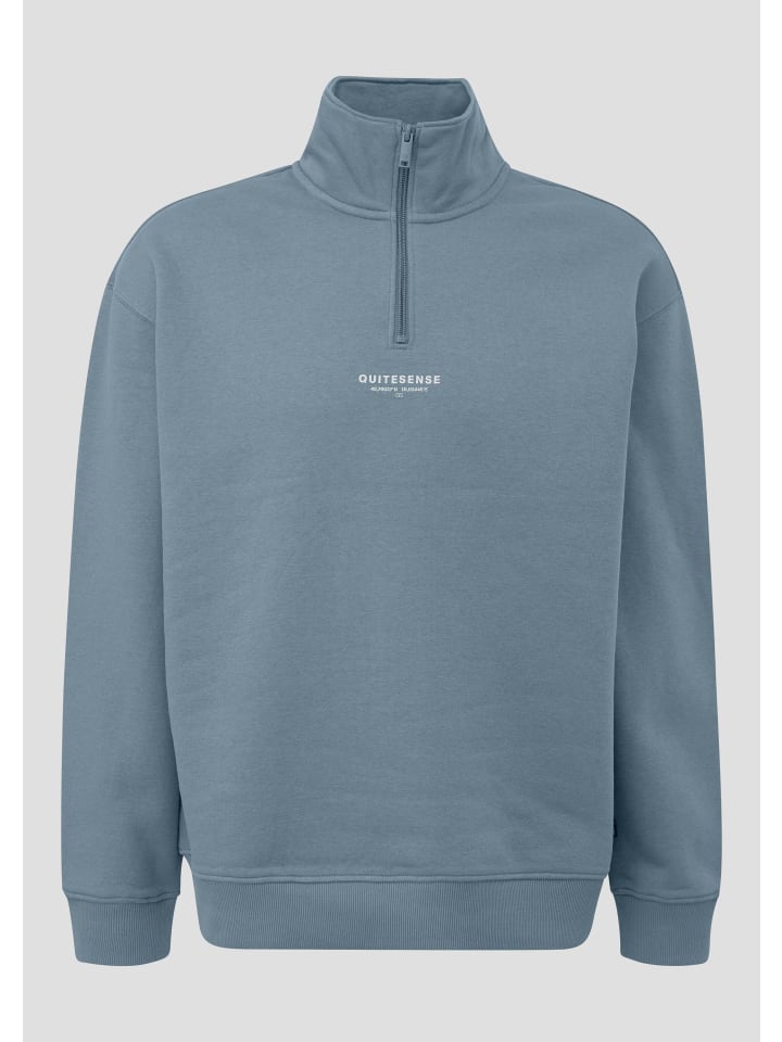 Ваш новый свитер с практичной молнией и уютной начесом внутри быстро станет вашей любимой вещью. Непринужденный принт спереди завершает образ, а классический крой обеспечивает комфорт. Воротник-стойка и ребристые манжеты идеально подойдут как для отдыха на природе, так и для прогулок по городу.