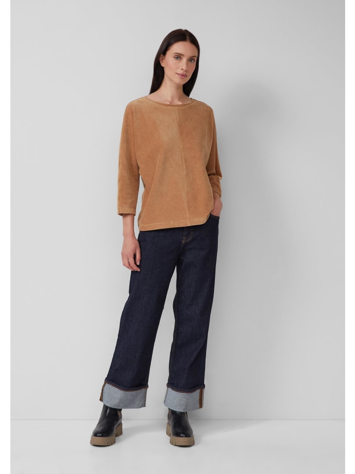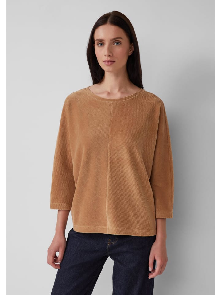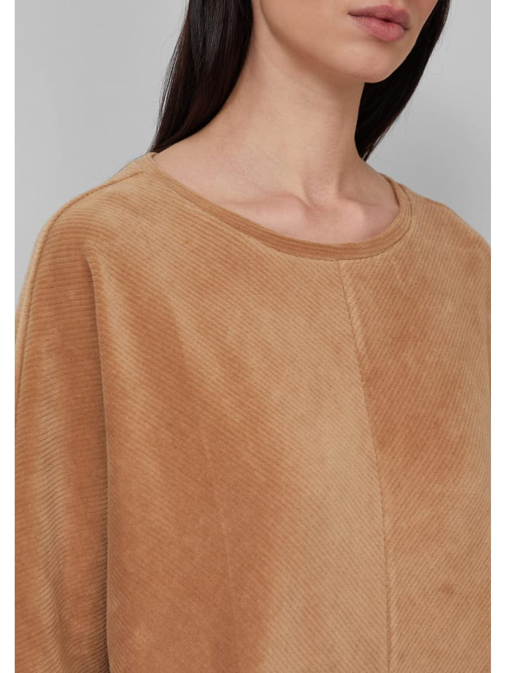 Расслабьтесь в этой уютной вельветовой толстовке с рукавами «летучая мышь» длиной 3/4. Текстурированная поверхность и мягкость делают ее идеальным компаньоном для комфортных повседневных моментов. Центральный шов добавляет современный штрих.
