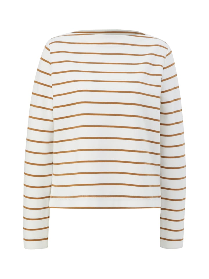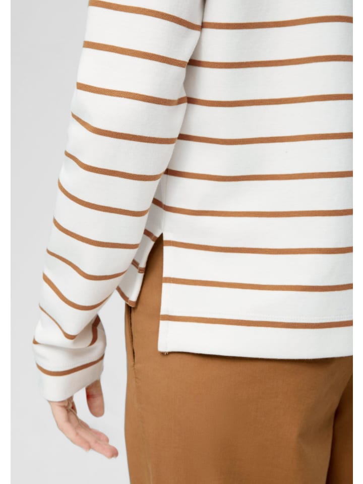 Расслабьтесь в этой полосатой кофте с длинными рукавами из мягкого хлопкового стрейча. Свободный вырез «лодочка» и боковые разрезы делают эту эластичную толстовку идеальным дополнением к вашим повседневным образам.