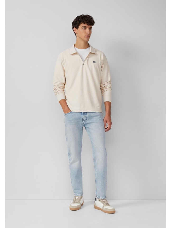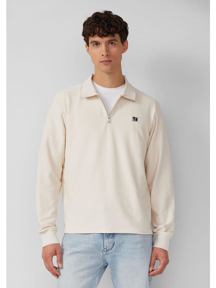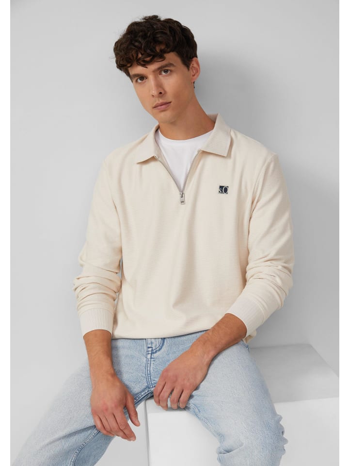 Эта повседневная хлопковая толстовка с воротником-поло сочетает в себе комфорт и стиль. Текстурированная махровая ткань, боковые разрезы и практичная молния делают ее идеальным дополнением к непринужденным повседневным образам.
