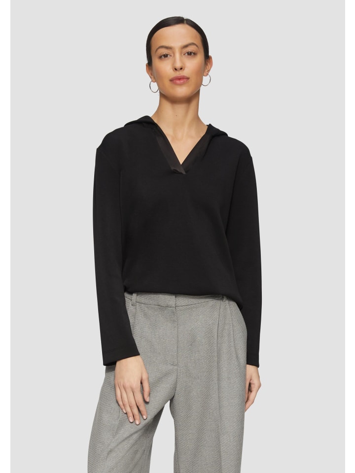 Повседневный шик и невероятно удобный: наша толстовка с капюшоном, V-образным вырезом и атласными деталями - ваш новый фаворит для расслабленных дней. Свободный крой и капюшон на подкладке обеспечат моменты абсолютного комфорта. Идеально подходит для осени или прохладных летних вечеров! Сочетайте ее с джинсами для повседневного образа или с юбкой для создания модного образа.