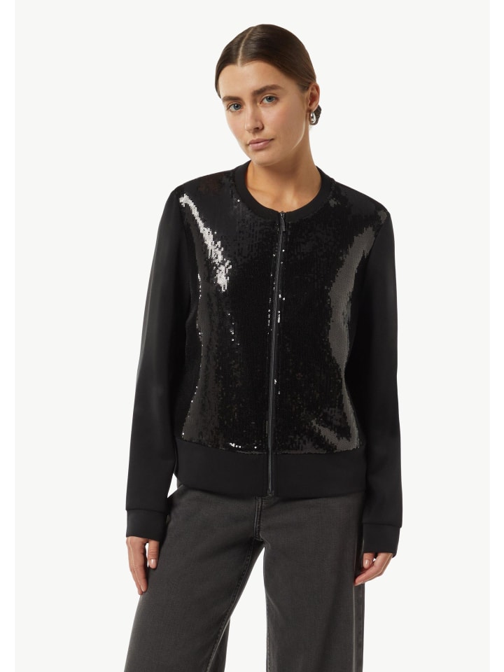 Добавьте нотку гламура в свой повседневный образ с этой толстовкой. Отделка пайетками изящно сверкает и добавляет стильный акцент. Благодаря прямому крою и практичной молнии вы легко сочетаете куртку с различными нарядами. Мягкая ткань свитшота и круглый вырез горловины гарантируют максимальный комфорт. Сочетайте куртку с простыми базовыми вещами для создания эффекта вау или украсьте свой повседневный образ.