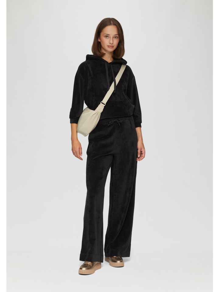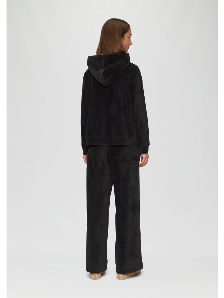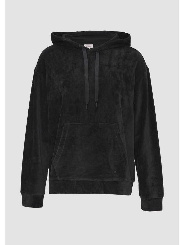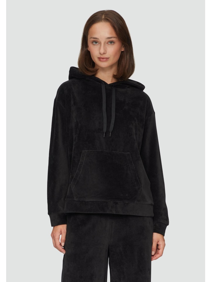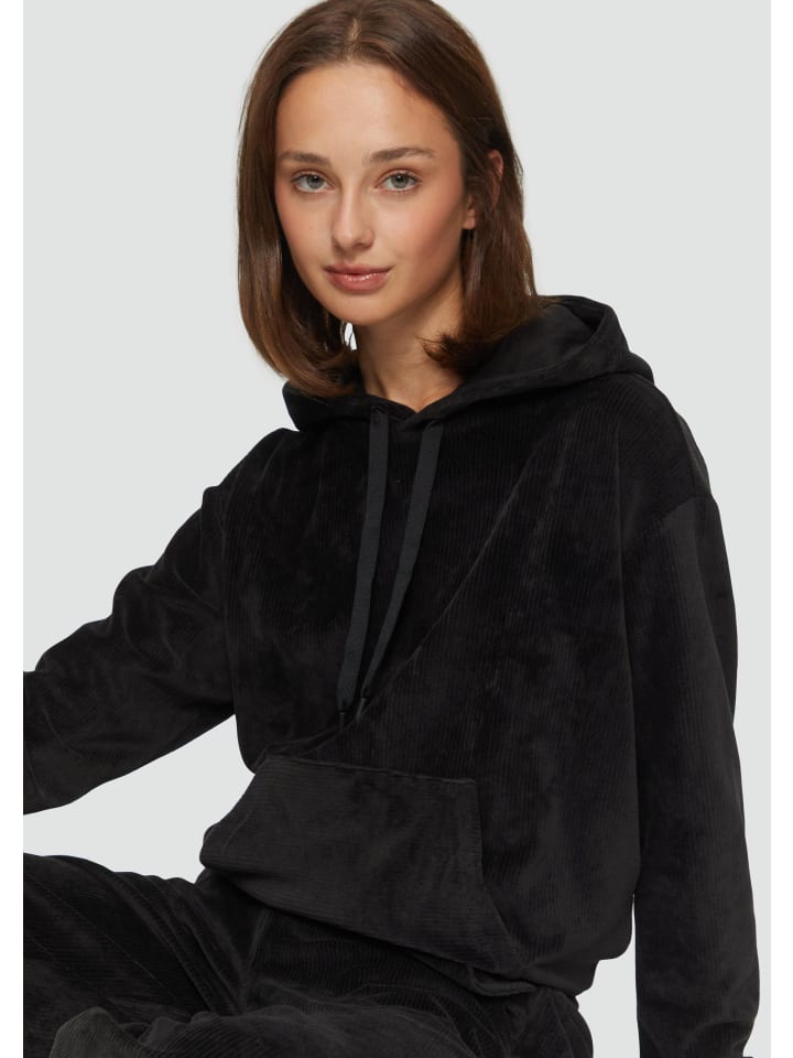 Уютная толстовка с капюшоном из мягкого вельветового трикотажа для непринужденных моментов. Капюшон на подкладке со шнурком, практичный карман-кенгуру и свободный крой сделают ее идеальным спутником для уютных дней.