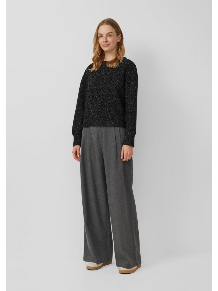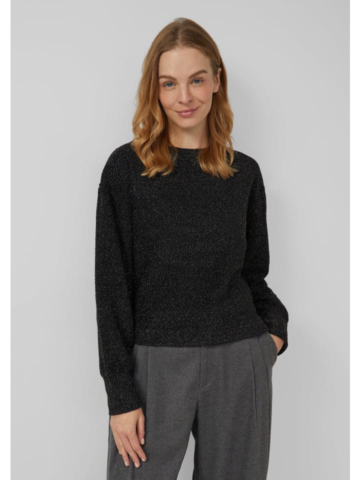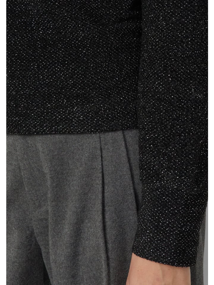 Этот укороченный свитер с мерцающей блестящей пряжей сочетает в себе свободный крой и мягкую ткань толстовки. Спущенные плечи и манжеты обеспечивают дополнительный комфорт.