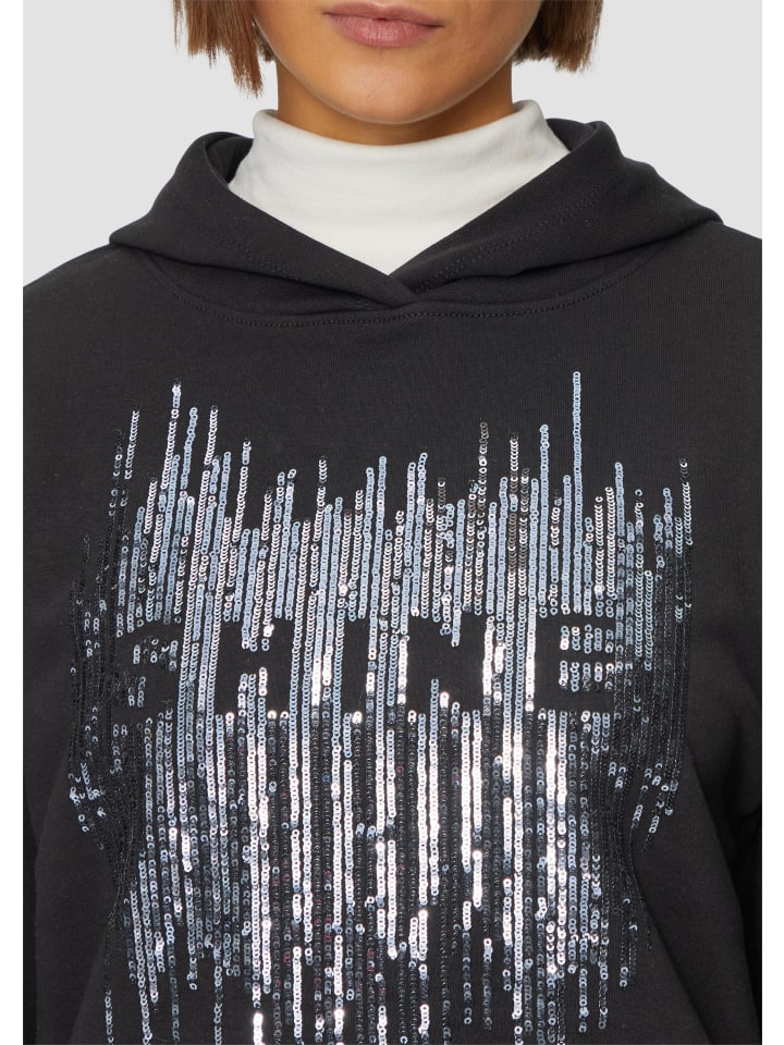 Расслабьтесь в этой стильной толстовке с капюшоном! Удобный свободный крой и сверкающие пайетки делают ее вашим новым фаворитом для стильных повседневных образов. Изготовленная из эластичной ткани свитшота с практичными ребристыми манжетами, эта вещь станет незаменимой на каждый день.