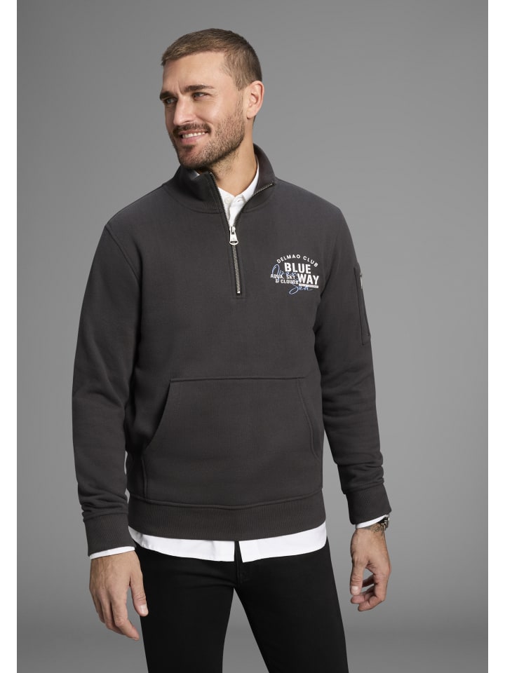 Универсальная мужская толстовка от DELMAO. Классический крой, длинные рукава и стильный принт. Изготовлена из мягкой и эластичной ткани, обеспечивающей полную свободу движений.